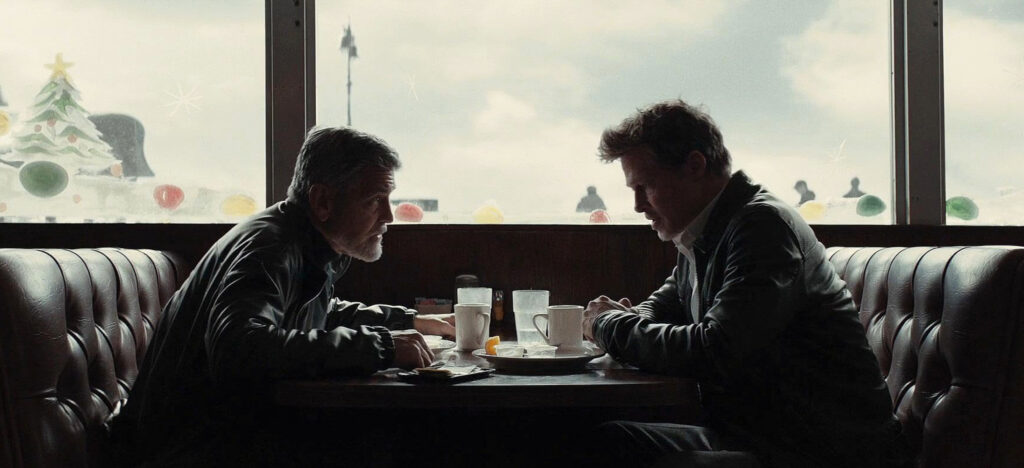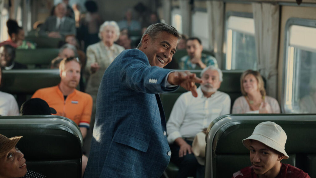 Si Clooney a toujours été vide, il s’est aussi vidé une seconde fois, quelque part en 2006, lorsqu’il cède définitivement son image à la marque Nespresso qui allait, avec l’aide de la star, révolutionner “l’expérience” de la consommation de café. Impossible d’y échapper : à chaque nouveau (rare) film de Clooney, mon regard bute sur cette virtualité sans cesse présente : Clooney va-t-il boire du café ? Nous jeter un regard caméra en nous glissant “What else ?”. Dans Wolfs (Jon Watts, 2024), son film précédent, ça n’a pas manqué : dans la dernière séquence, il partageait une tasse face à Brad Pitt, ambassadeur Delonghi.
