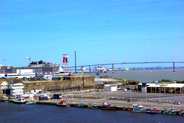 [Pont de Saint-Nazaire, vu de la base sous-marine. CC Wikimedia.]